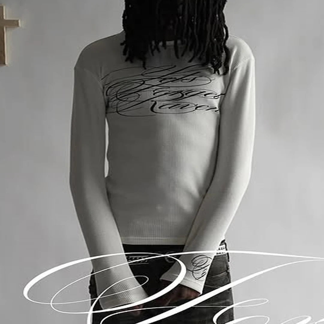 American Dark Retro Y2K Printed Long Sleeved T-Shirt High Street Gothic Trendy Outfit Top for Casual Wear