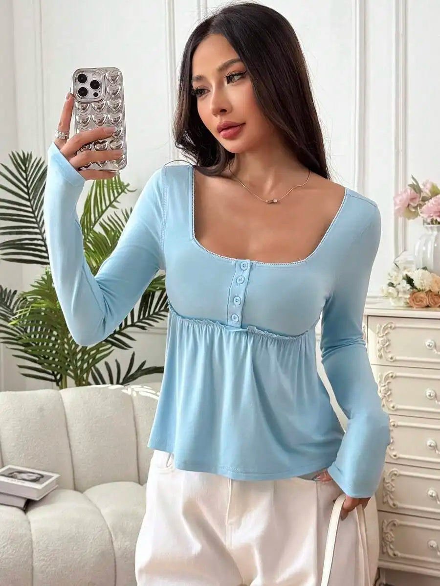 Women Amilitary Green Front Button Long Sleeve Casual Shirt,Fall,Winter